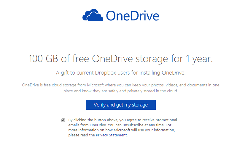 Microsoftのクラウドストレージサービスが容量100GBのボーナスキャンペーンを今現在開始している。